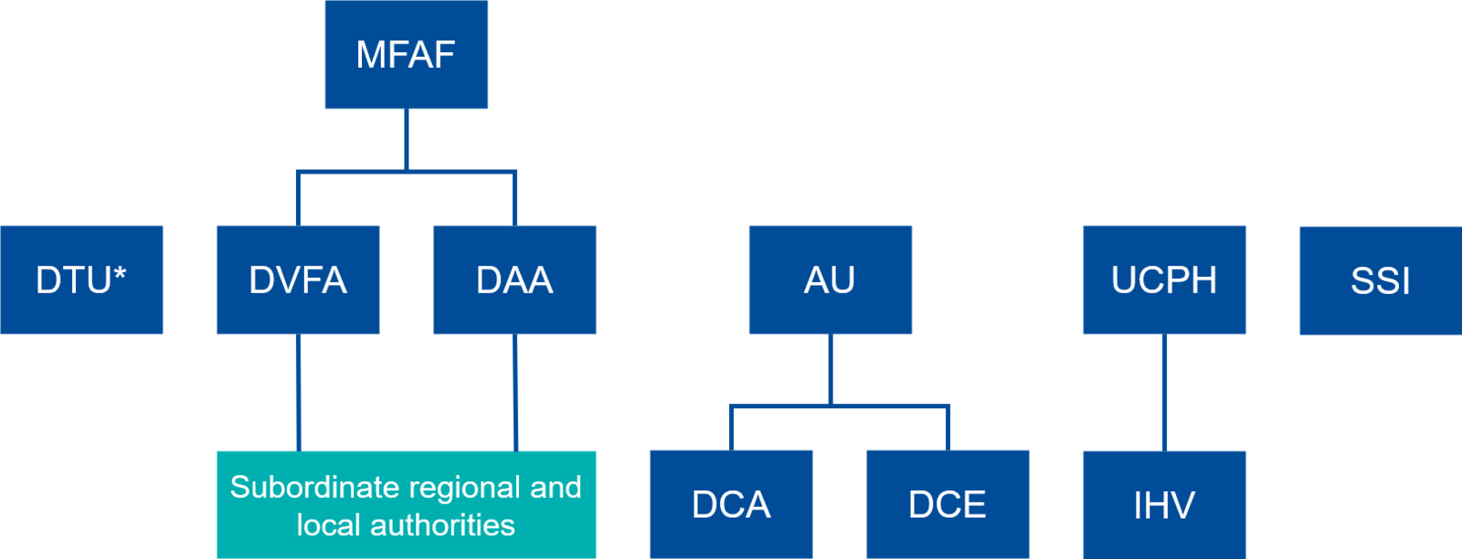 The Danish Veterinary Consortium, which consists of IVH, UCPH and the Statens Serum Institut (SSI), is responsible for public sector services related to veterinary contingency in Denmark. The consortium conducts research to support and underpin decisions in the area of veterinary contingency, and also provides the DVFA with scientific advice. The public sector consultancy for the DVFA includes advice on a wide range of subjects, including disease surveillance and handling of specific emergency tasks, e.g. suspected disease outbreaks, as well as assistance in the form of risk assessments and replies to questions from the government.