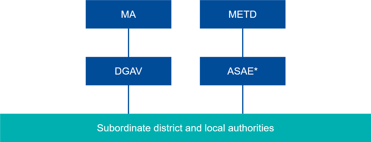 Within the Ministry of Agriculture and Maritime Affairs (MAM), the Directorate-General for Food and Veterinary (DGAV) is in charge of coordinating legislation, preparing bills and the multi-annual national control plan. It is also responsible for the implementation of food safety controls for food of animal origin. Most activities in the area of food safety and food inspections are supervised by the MAM.
