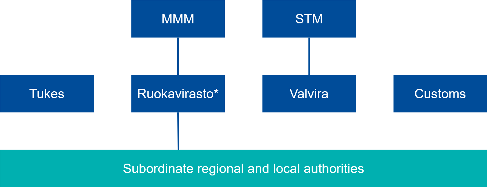 Elintarvike- ja rehuturvallisuutta koskeva ministerivastuu on Suomessa keskitetty Maa- ja metsätalousministeriölle (MMM). MMM:n käytännön ja lainsäädännöllinen vastuu ulottuu eläinperäisten tuotteiden kaikkiin jalostusvaiheisiin jakelua lukuun ottamatta.